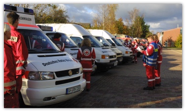 qualifiziertem Personal und/oder mit einer Vielzahl von Krankenkraftwagen für den